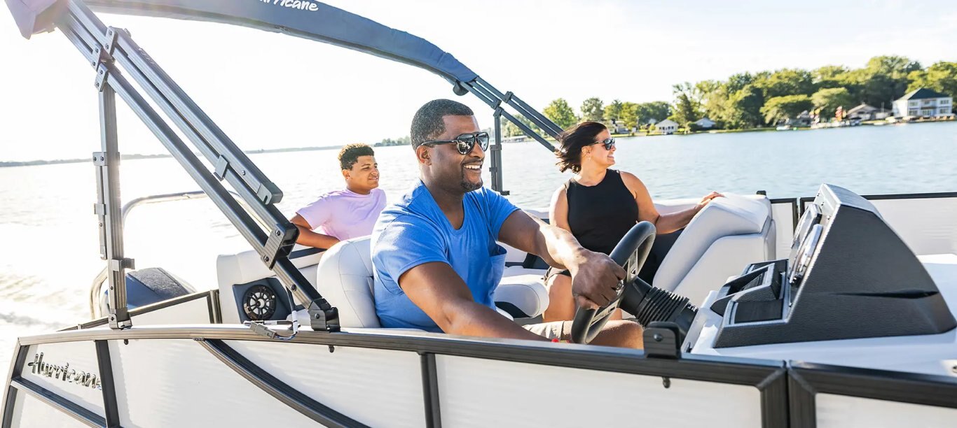 The contrasting style of the FunDeck steering wheel tells you this is not your average deck boat. Precisely navigate the water with the best of all worlds with wave cutting performance, a watersport wake and wide-body stability.