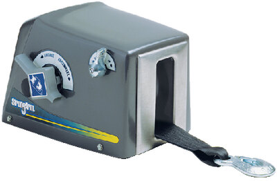 Clutch control knob engages gears or releases load in a controlled freewheel mode. For boat trailers and other horizontal pulling applications. Equipped with 20\' x 2\" polyester strap and hook.